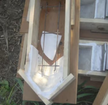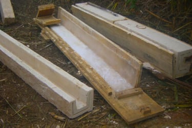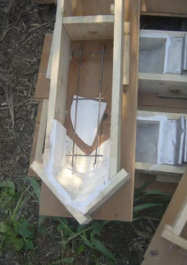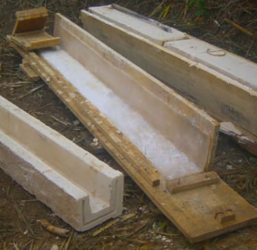 A partir de pedras antigas quebradas, foram copiadas suas texturas por meio de moldes em silicone, aplicados em formas para produzir novas peças de concreto, cuidadosamente ajustadas em cor e textura. Após dezenas de testes, o resultado tornou-se indistinguível da pedra original — a ponto de ninguém perceber que se trata de elementos novos.